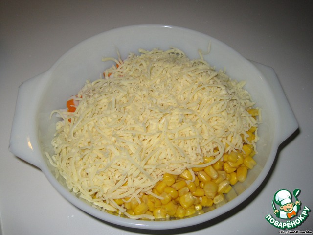 Сыр добавляем в наш салатик (у меня был сразу тертый).