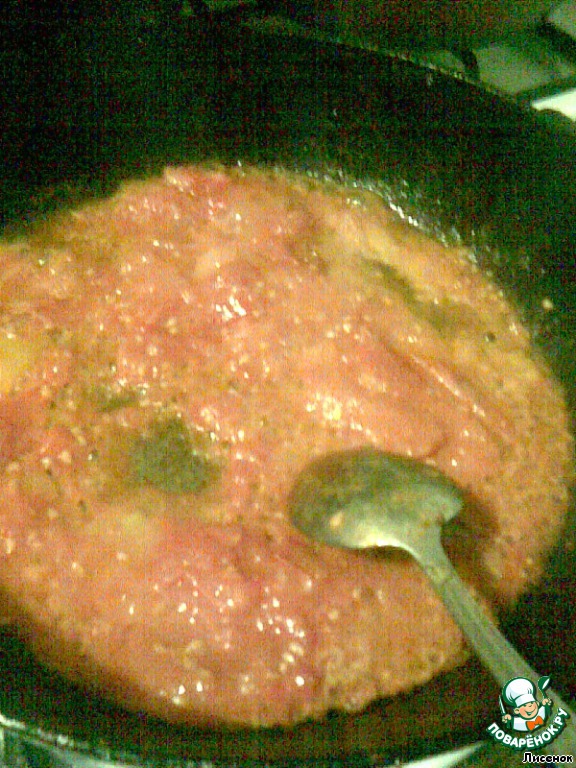 Для соуса я взяла консервированные помидоры ( открыла банку, а некоторые были "нетоварного", так сказать, вида. Вот они и пошли в дело). Можно взять и томатную пасту, на ваш вкус.