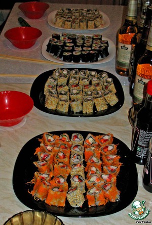 Рецепт отличный. Прям как по учебнику. Но мне одной кажется странным,что на ужин у них каждый день столько алкоголя. Просто я пью крайне редко и мало. Но роллы супер, никогда не могла понять как же их наизнанку выворачивать,а тут понятно и даже ещё и жареный))