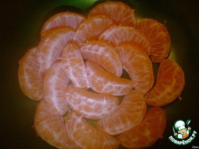 Руки лучше намочить водой, чтобы тесто не прилипало. Берем столовой ложкой тесто, разравниваем на ладони в лепешку. На лепешку кладем дольку «секретного» мандарина и прячем ее.