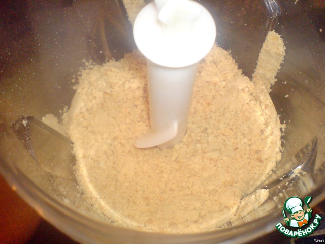 В это время 2 пачки печенья превращаем в мелкую крошку с помощью блендера или мясорубки.
