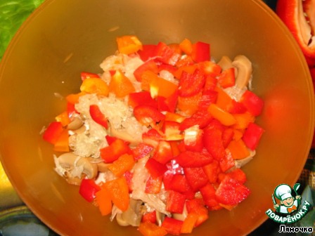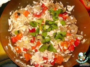 Название, конечно, не самое оригинальное :) Просто первое, что пришло в голову. Салат придумала сама, хотелось чего-то быстрого, симпатичного и не очень тяжелого. О результате судить вам...
