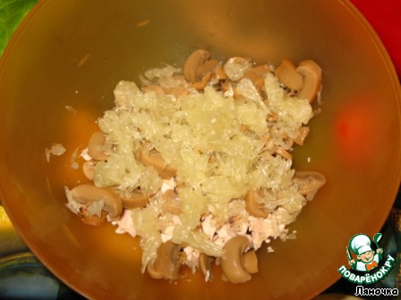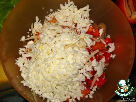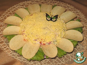 • Засыпать верх салата тертыми на мелкой терке желтками.