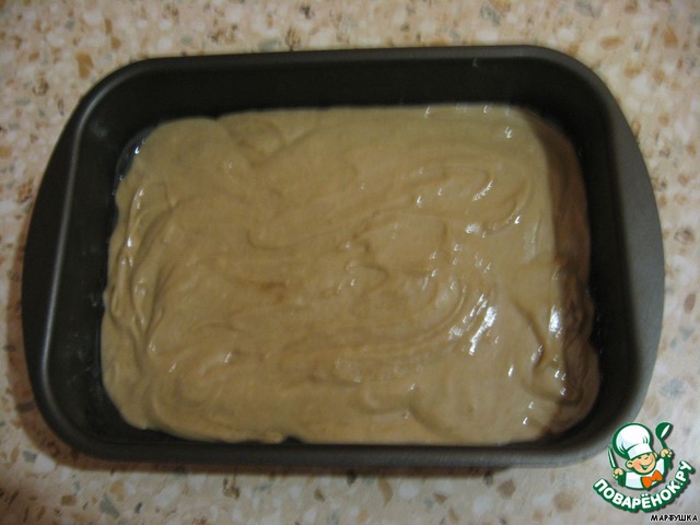 Форму смазали и выложили тесто. Поставили в разогретую духовку (180 гр) на 20 минут.