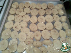 Вот так она уложила картошечку (ну правда чуток ей показала, как это делается).