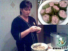 Начинить фаршем болгарский перчик (у меня был замороженный) - наши будущие ёлочки. Всем этим процессом занималась я сама.