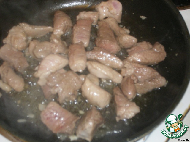 Так же на смеси масел обжарьте кусочки свинины 5-10 мин.