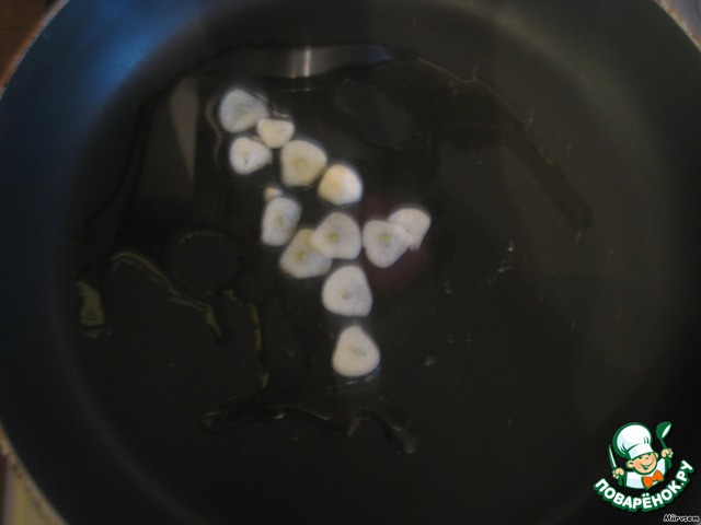 Чеснок рубим (можно раздавить ножом), жарим на сильном огне в ст. л. масла до появления характерного запаха "курица с чесноком жареная" ;)) Он то нам и нужен.
