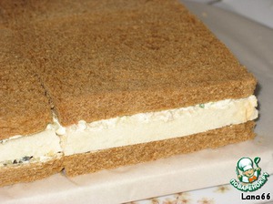 Затем темные тосты. Стыки должны быть ровными и без щелей. При желании можно уложить еще один слой. Торт будет повыше.