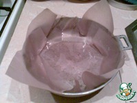 Форму выложить смазанным пергаментом так, чтобы сверху выступали края. Духовку разогреть до 180 градусов.