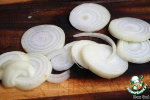 Готовим маринад. Лук очистить, нарезать кольцами.