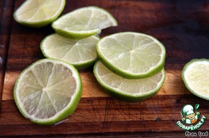 Лайм (или лимон) вымыть, нарезать кольцами вместе с кожурой.