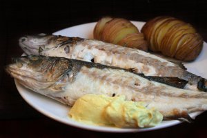 Сибас запеченный на гриле с соусом айоли и картофельными гармошками. Сибас - он как форель, его практически невозможно испортить, а вот усовершенствовать - всегда пожалуйста. Полноценное блюдо - рыба, соус и гарнир. Все невероятно аппетитное и вкусное. Айоли - это французский чесночный соус, главной составляющей которого являются лимонный сок, оливковое масло и яичные желтки. Превосходно подходит к рыбе!