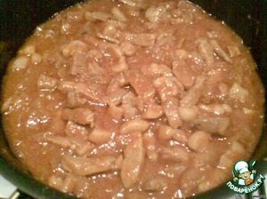 Затем добавить томат-пасту и тёртые грецкие орехи, тушить ещё 10-15 минут. -