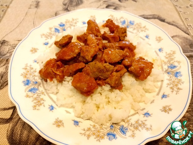 Подавать с пюрешкой, рисом, рожками, гречкой, ну вобщем, кто что любит.