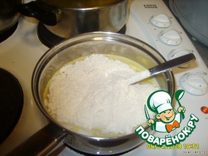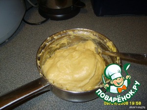 Затем по одному вбить яйца, тщательно перемешивая (это легко сделать с помощью миксера), чтобы не заварились яйца