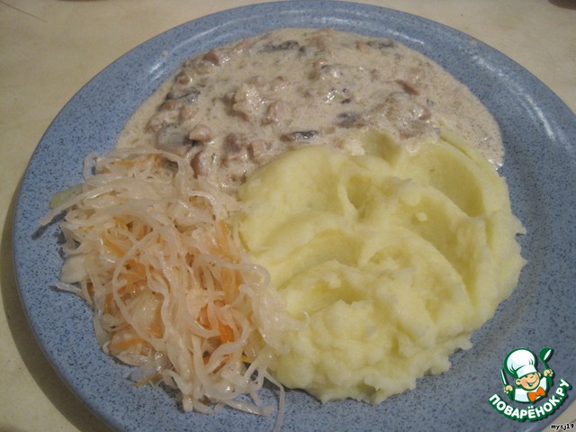 Рецепт «Курица с грибами в сметанном соусе»: