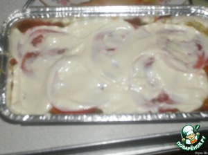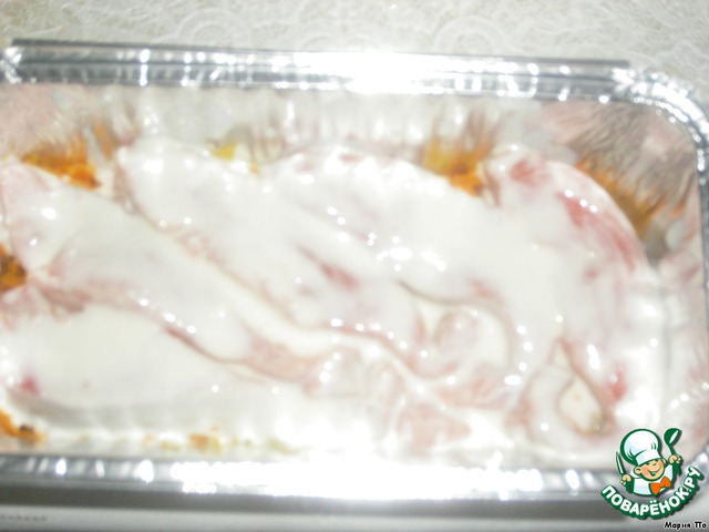 Смазываем майонезом. Ставим в духовку еще на 10 минут.