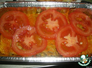 Достаём из духовки, выкладываем кружочки помидоров.