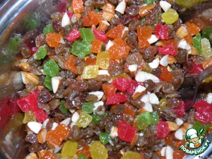 Добавляем цукатики и пусЧай себе стоит (помешиваем иногда, потому как коньяк-таки, зараза, стекает на дно) пока мы возимся дальше...