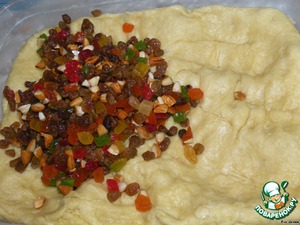 Добавляем фруктовую смесь.. Замечу, что чем в нашем кексе смеси больше, тем лучше, можно брать изюма не 300 гр, а 500 и цукатов побольше )))