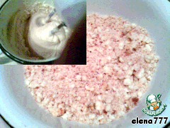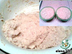 Получившуюся массу разделить на две части и выложить, уплотняя, в наши чашечки.