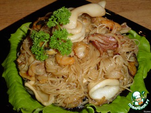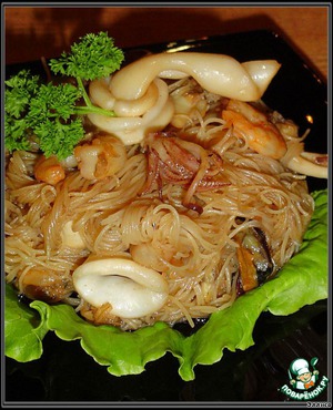 [+4]Впервые пробовала рисовую вермишель! Да еще и с моими любимыми морепродуктами - вкуснота! Блюдо получилось очень легкое, вкусное, насыщенное! Отлично сочеталось с соевым соусом!