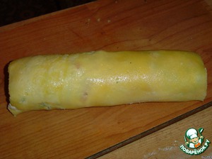 и сворачиваем рулет. Рулет завернуть в пищевую пленку и отправить в холодильник на пару часов.