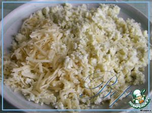 Сыр натереть на мелкой терке, смешать с желтками. -