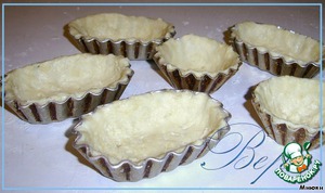 Выстелить формочки тестом, чтобы оно прилегало к стенкам и дну.