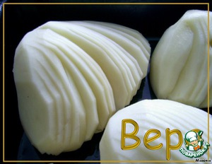 Нарезать картофель веерами (немного не дорезая с одного конца).