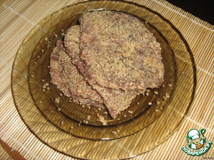 Мясо нарезаем, отбиваем, маринуем в соке из мандарина + соль и перец.