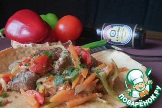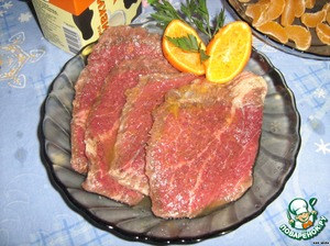 Рецепт «Говядина в мандариновом маринаде и сливочный соус с дольками мандарина»: