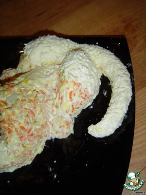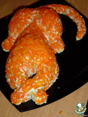Глазки вырезаем из маслин, а носик из моркови или красного перца.