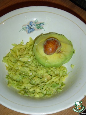 Сверху выкладываем авокадо. И опять слой майонеза.