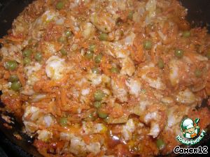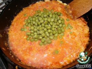 • Всыпать горошек, перемешать и потушить всё минут 5
