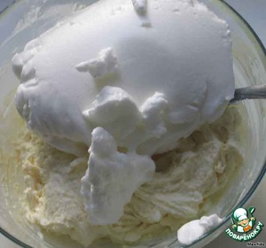 белки взбиваем в стойкую пышную массу и аккуратно вводим в творожную начинку