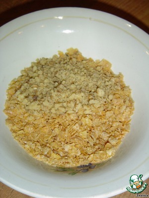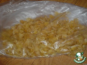 • Кукурузные хлопья помещаем в полиэтиленовый пакет и крошим их с помощью скалки.