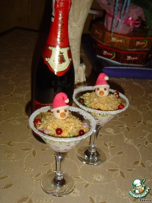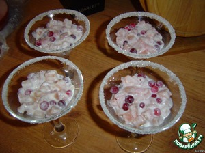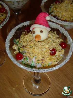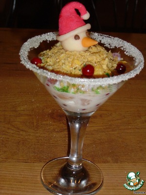 • Устанавливаем снеговика в центр бокала и украшаем десерт ягодами клюквы.