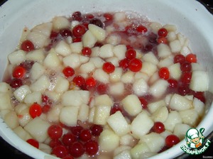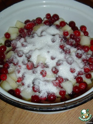 • Смешиваем с клюквой и сахаром и варим 3 мин.