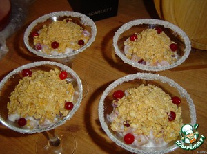 • Фруктово-йогуртовую массу выкладываем в подготовленные бокалы.