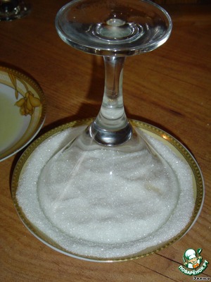 • Края бокалов смачиваем в лимонном соке, а затем в сахаре.