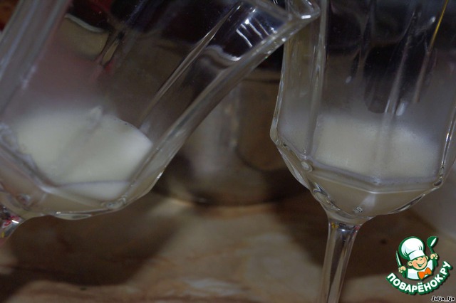 В бокал или креманку наливаем по 2 ст. л. молочной смеси.