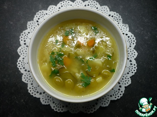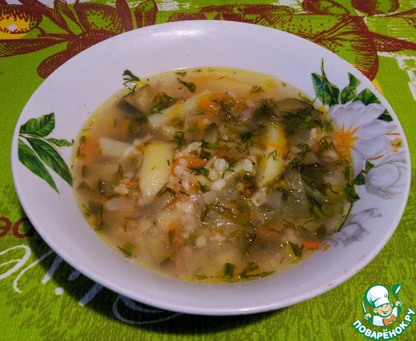 Дальше дело за перловой крупой. Она, конечно, варится очень долго. Поэтому, если её сразу добавить в бульон, наш рассольник будет варится о-о-очень долго, все витамины выварятся и пользы от этого, мягко говоря, "супчика" будет ноль.