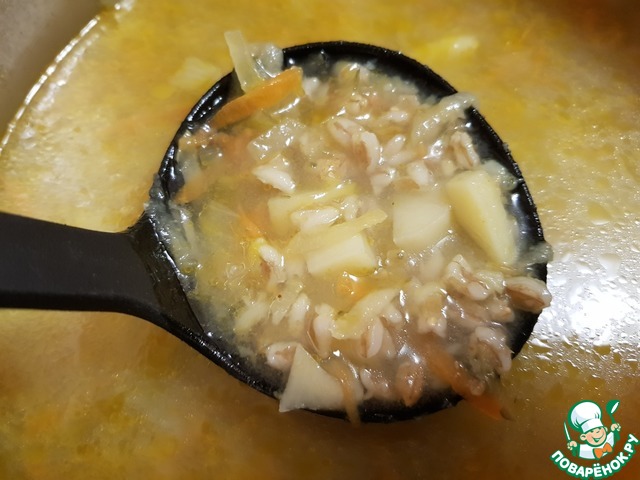 Поэтому о перловке нужно позаботиться заранее. Или её заранее отварить до готовности. Или сделать, как я: