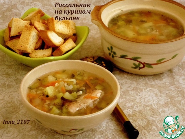 Рассольник любят многие. И каких только видов рассольников нет! И с грибами, и с почками, и без почек, и даже (я где-то видела) с рыбой. Сегодня готовила рассольник на курином бульоне. Решила поделиться рецептиком.