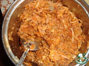 Смешать грибы с капустой. Добавить томат и потушить минут 10.
