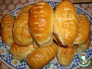 Формируем пироги. Смазываем яйцом и отправляем в разогретую духовку. Выпекать при 180 градусах. А время зависит от духовки. У меня пеклись 20-25 мин. Когда лепила пироги, я стол мукой не посыпала. Тесто не липнет.