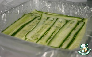 Теперь очередь огурчиков. Тоже плотненько друг к другу.