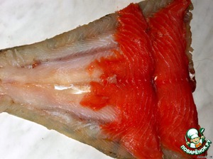 Удаляем крупные кости и снимаем излишки мяса. На шкуре оставляем 0.5 см филе. -